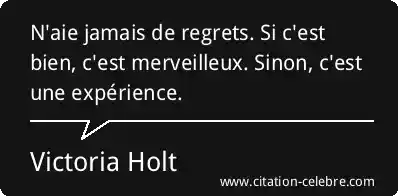 N'aie jamais de regrets. Si c'est bien, c'est merveilleux. Sinon, c'est une expérience.