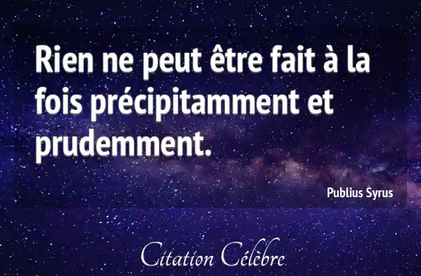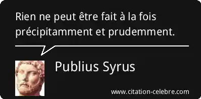 Rien ne peut être fait à la fois précipitamment et prudemment.