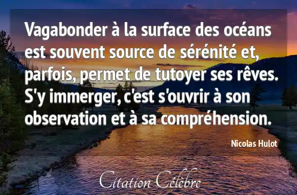 Vagabonder à la surface des océans est souvent source de sérénité et, parfois, permet de tutoyer ses rêves. S'y immerger, c'est s'ouvrir à son observation et à sa compréhension.