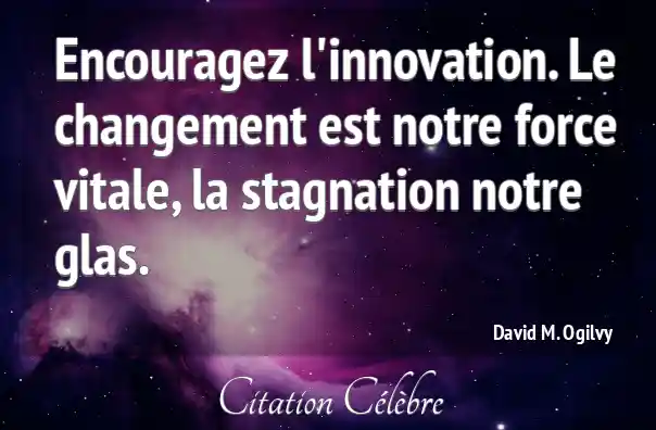Encouragez l'innovation. Le changement est notre force vitale, la stagnation notre glas.