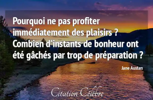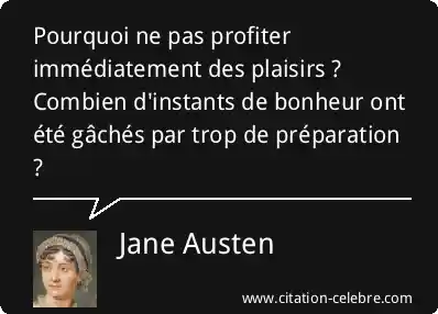 Pourquoi ne pas profiter immédiatement des plaisirs ? Combien d'instants de bonheur ont été gâchés par trop de préparation ?