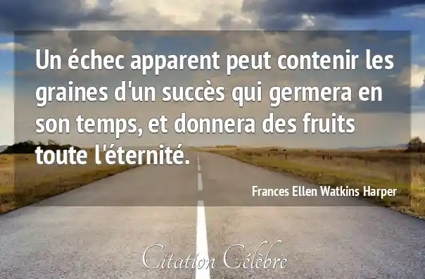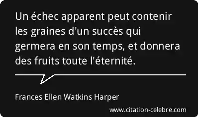 Un échec apparent peut contenir les graines d'un succès qui germera en son temps, et donnera des fruits toute l'éternité.