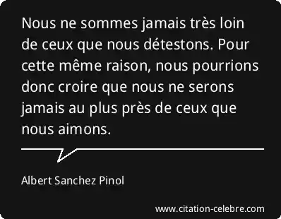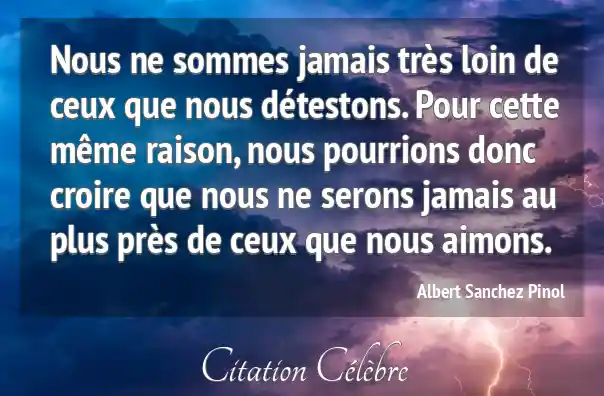 Nous ne sommes jamais très loin de ceux que nous détestons. Pour cette même raison, nous pourrions donc croire que nous ne serons jamais au plus près de ceux que nous aimons.