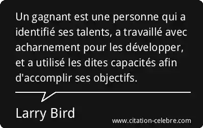Un gagnant est une personne qui a identifié ses talents, a travaillé avec acharnement pour les développer, et a utilisé les dites capacités afin d'accomplir ses objectifs.