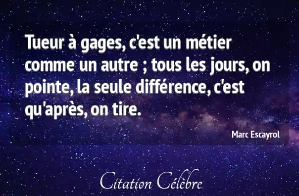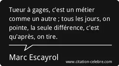 Tueur à gages, c'est un métier comme un autre ; tous les jours, on pointe, la seule différence, c'est qu'après, on tire.