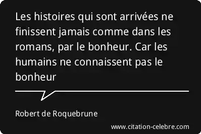 Les histoires qui sont arrivées ne finissent jamais comme dans les romans, par le bonheur. Car les humains ne connaissent pas le bonheur