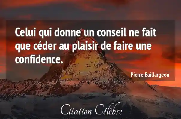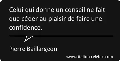 Celui qui donne un conseil ne fait que céder au plaisir de faire une confidence.