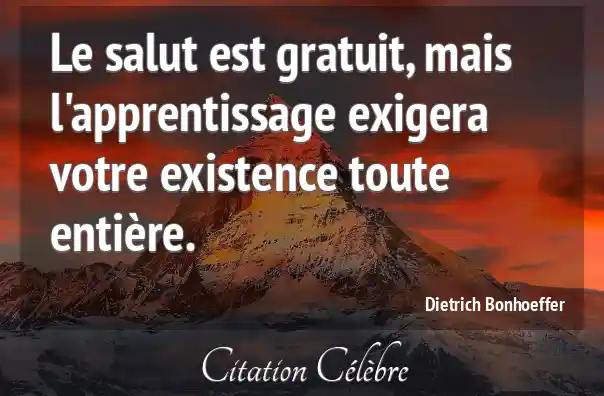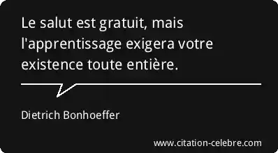 Le salut est gratuit, mais l'apprentissage exigera votre existence toute entière.