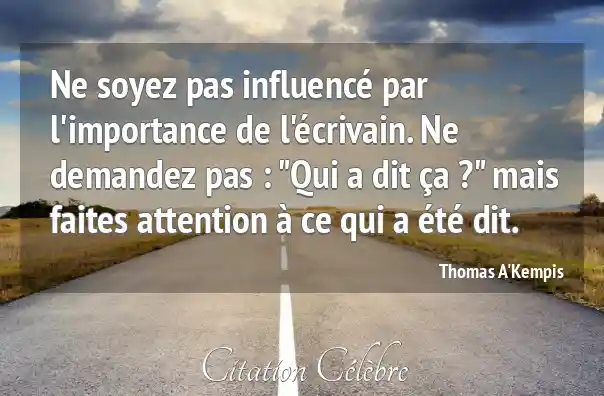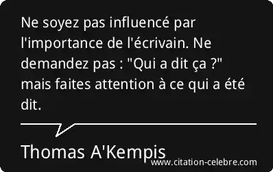 Ne soyez pas influencé par l'importance de l'écrivain. Ne demandez pas : "Qui a dit ça ?" mais faites attention à ce qui a été dit.