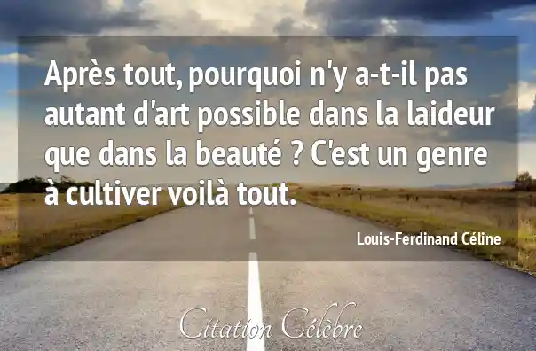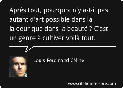 Après tout, pourquoi n'y a-t-il pas autant d'art possible dans la laideur que dans la beauté ? C'est un genre à cultiver voilà tout.