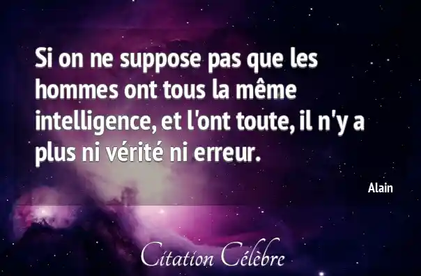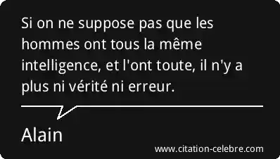 Si on ne suppose pas que les hommes ont tous la même intelligence, et l'ont toute, il n'y a plus ni vérité ni erreur.