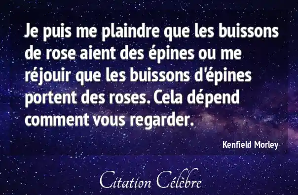 Je puis me plaindre que les buissons de rose aient des épines ou me réjouir que les buissons d'épines portent des roses. Cela dépend comment vous regarder.
