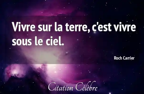 Citation Roch Carrier vivre : Vivre sur la terre, c'est vivre sous le ciel....