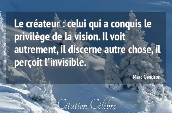 Le créateur : celui qui a conquis le privilège de la vision. Il voit autrement, il discerne autre chose, il perçoit l'invisible.