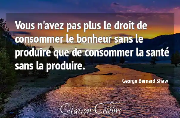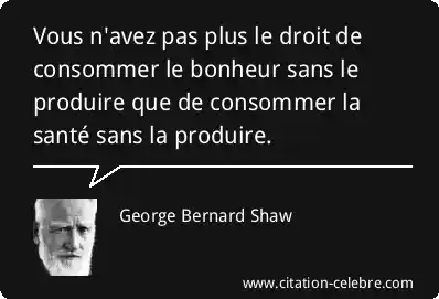 Vous n'avez pas plus le droit de consommer le bonheur sans le produire que de consommer la santé sans la produire.