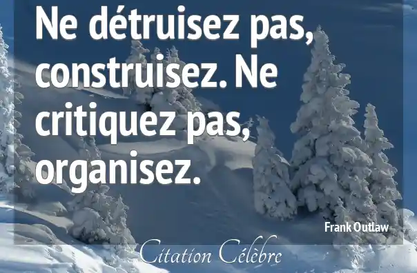 Ne détruisez pas, construisez. Ne critiquez pas, organisez.