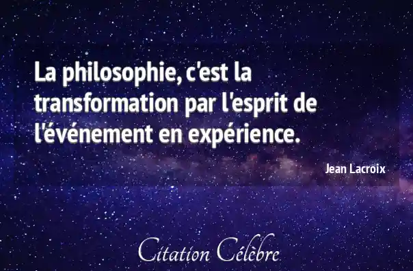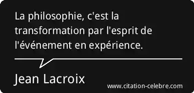 La philosophie, c'est la transformation par l'esprit de l'événement en expérience.