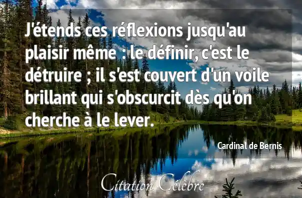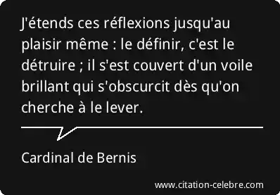 J'étends ces réflexions jusqu'au plaisir même : le définir, c'est le détruire ; il s'est couvert d'un voile brillant qui s'obscurcit dès qu'on cherche à le lever.