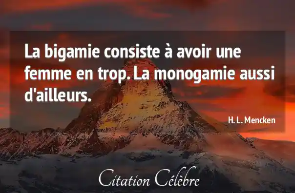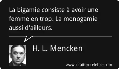La bigamie consiste à avoir une femme en trop. La monogamie aussi d'ailleurs.