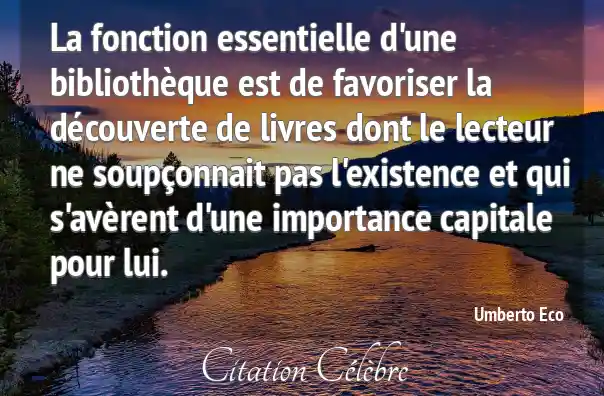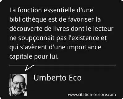 La fonction essentielle d'une bibliothèque est de favoriser la découverte de livres dont le lecteur ne soupçonnait pas l'existence et qui s'avèrent d'une importance capitale pour lui.