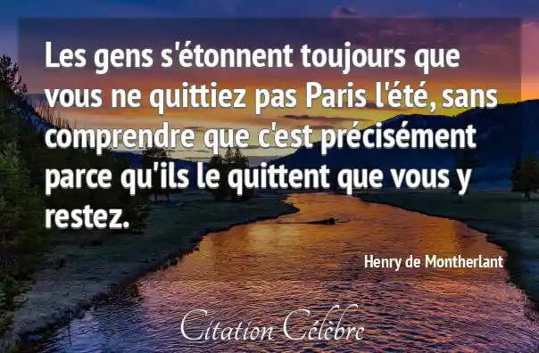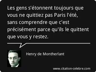 Les gens s'étonnent toujours que vous ne quittiez pas Paris l'été, sans comprendre que c'est précisément parce qu'ils le quittent que vous y restez.