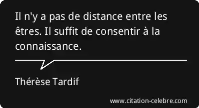 Il n'y a pas de distance entre les êtres. Il suffit de consentir à la connaissance.