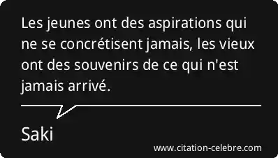 Les jeunes ont des aspirations qui ne se concrétisent jamais, les vieux ont des souvenirs de ce qui n'est jamais arrivé.