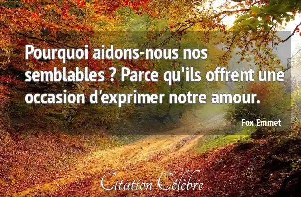 Pourquoi aidons-nous nos semblables ? Parce qu'ils offrent une occasion d'exprimer notre amour.