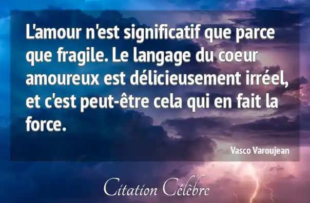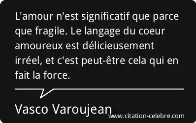L'amour n'est significatif que parce que fragile. Le langage du coeur amoureux est délicieusement irréel, et c'est peut-être cela qui en fait la force.