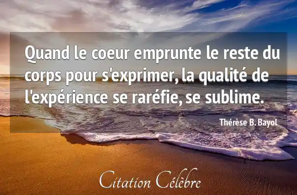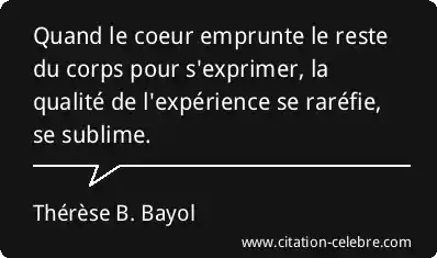 Quand le coeur emprunte le reste du corps pour s'exprimer, la qualité de l'expérience se raréfie, se sublime.