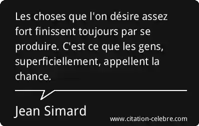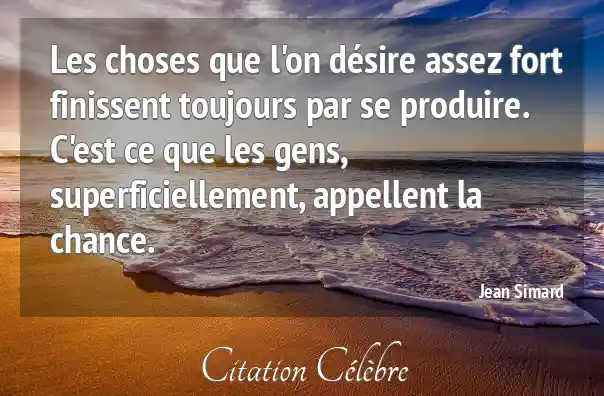 Les choses que l'on désire assez fort finissent toujours par se produire. C'est ce que les gens, superficiellement, appellent la chance.