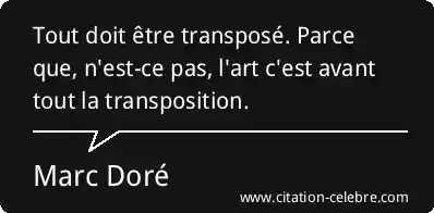 Citation Marc Doré art : Tout doit être transposé. Parce que, n'est-ce pas, l'art c'est...