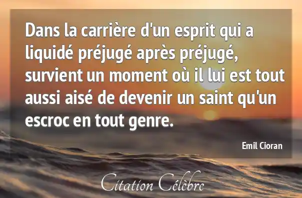 Dans la carrière d'un esprit qui a liquidé préjugé après préjugé, survient un moment où il lui est tout aussi aisé de devenir un saint qu'un escroc en tout genre.