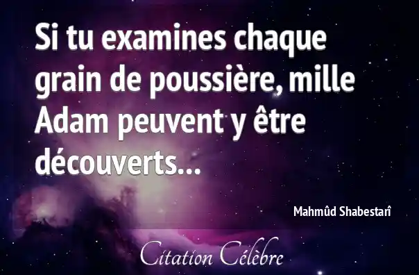 Si tu examines chaque grain de poussière, mille Adam peuvent y être découverts...