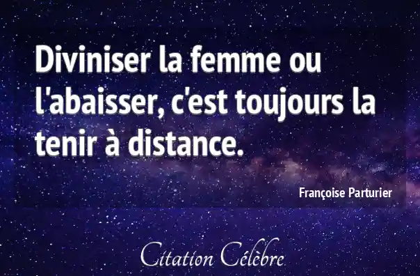 Diviniser la femme ou l'abaisser, c'est toujours la tenir à distance.