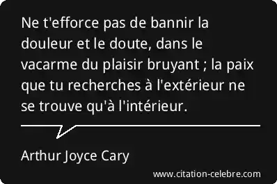 Ne t'efforce pas de bannir la douleur et le doute, dans le vacarme du plaisir bruyant ; la paix que tu recherches à l'extérieur ne se trouve qu'à l'intérieur.