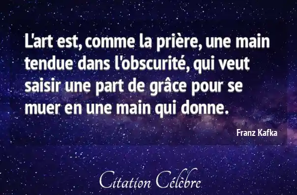 L'art est, comme la prière, une main tendue dans l'obscurité, qui veut saisir une part de grâce pour se muer en une main qui donne.