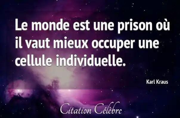Le monde est une prison où il vaut mieux occuper une cellule individuelle.