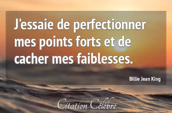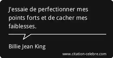 J'essaie de perfectionner mes points forts et de cacher mes faiblesses.