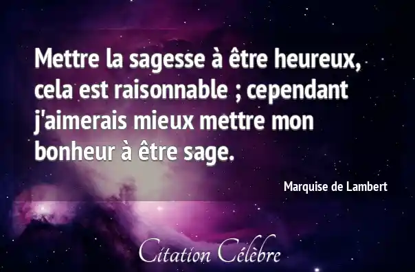 Mettre la sagesse à être heureux, cela est raisonnable ; cependant j'aimerais mieux mettre mon bonheur à être sage.