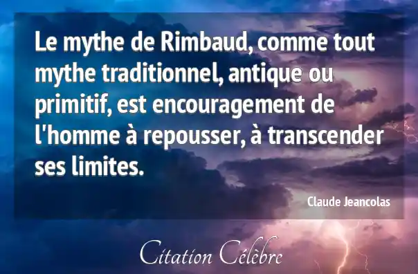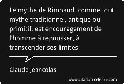Le mythe de Rimbaud, comme tout mythe traditionnel, antique ou primitif, est encouragement de l'homme à repousser, à transcender ses limites.