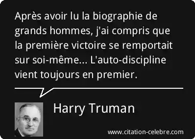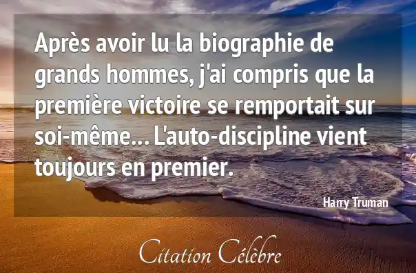 Après avoir lu la biographie de grands hommes, j'ai compris que la première victoire se remportait sur soi-même... L'auto-discipline vient toujours en premier.