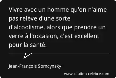 Vivre avec un homme qu'on n'aime pas relève d'une sorte d'alcoolisme, alors que prendre un verre à l'occasion, c'est excellent pour la santé.