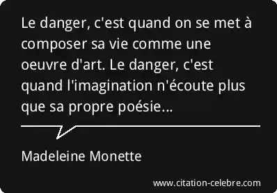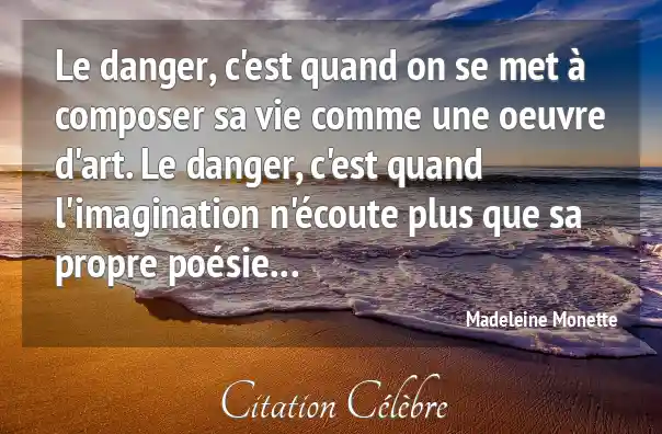 Le danger, c'est quand on se met à composer sa vie comme une oeuvre d'art. Le danger, c'est quand l'imagination n'écoute plus que sa propre poésie...