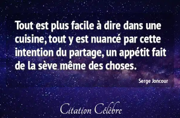 Tout est plus facile à dire dans une cuisine, tout y est nuancé par cette intention du partage, un appétit fait de la sève même des choses.
