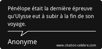 Pénélope était la dernière épreuve qu'Ulysse eut à subir à la fin de son voyage.