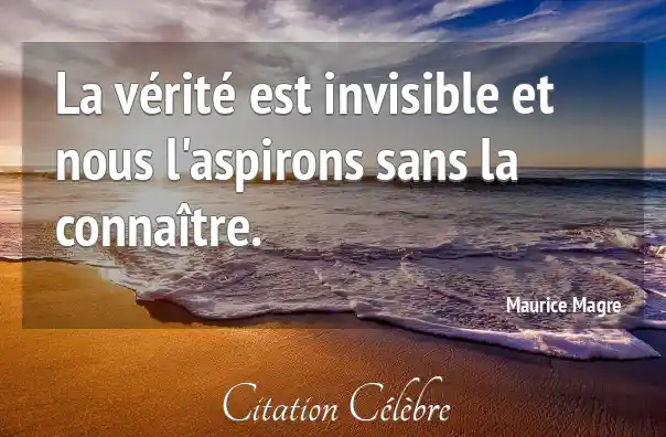 La vérité est invisible et nous l'aspirons sans la connaître.