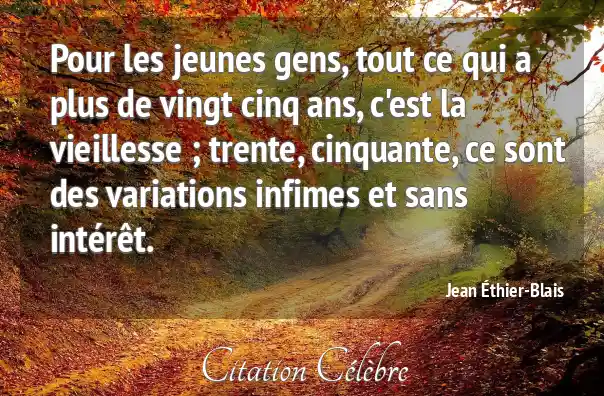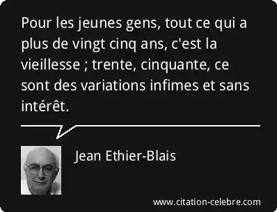 Pour les jeunes gens, tout ce qui a plus de vingt cinq ans, c'est la vieillesse ; trente, cinquante, ce sont des variations infimes et sans intérêt.