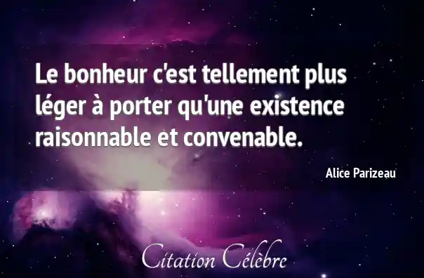 Le bonheur c'est tellement plus léger à porter qu'une existence raisonnable et convenable.