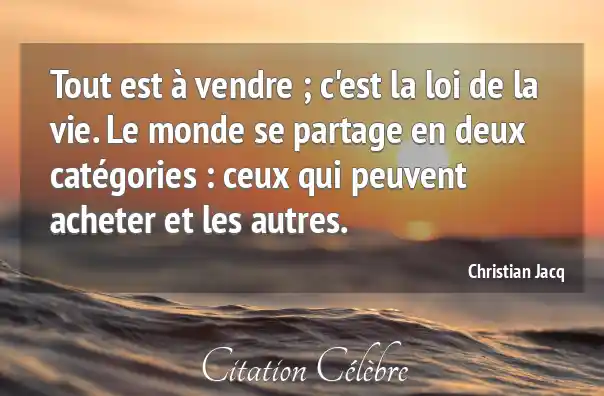 Tout est à vendre ; c'est la loi de la vie. Le monde se partage en deux catégories : ceux qui peuvent acheter et les autres.